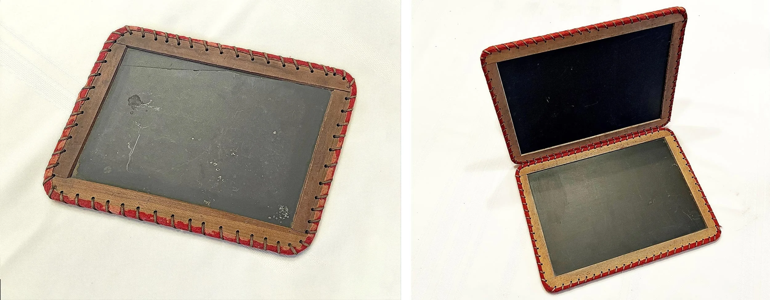 The noiseless slate was Goodrich’s answer to the constant clatter created by students as they worked at their desks on their wood-framed individual slates. Goodrich’s noiseless slates were used throughout the country for decades. Left: single slate. Right: Double slate.